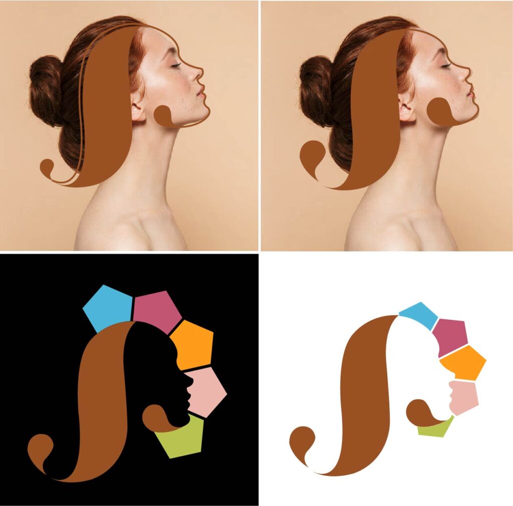 長い髪をPの字にした穏やかな女性の顔を使いました。